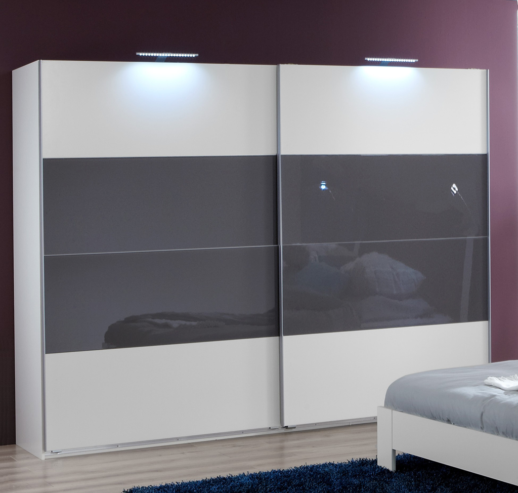 Ντουλάπα συρόμενη δίφυλλη. Το κάθε φύλλο έχει τέσσερεις ταμπλάδες καθ' ύψος και το υλικό αυτών μπορεί να είναι μελαμίνη 18 χιλ. ή και σε συνδυασμό με κρύσταλλο. Ο εξαιρετικός μηχανισμός κύλισης κάνει το άνοιγμα μιά ευχάριστη αίσθηση.