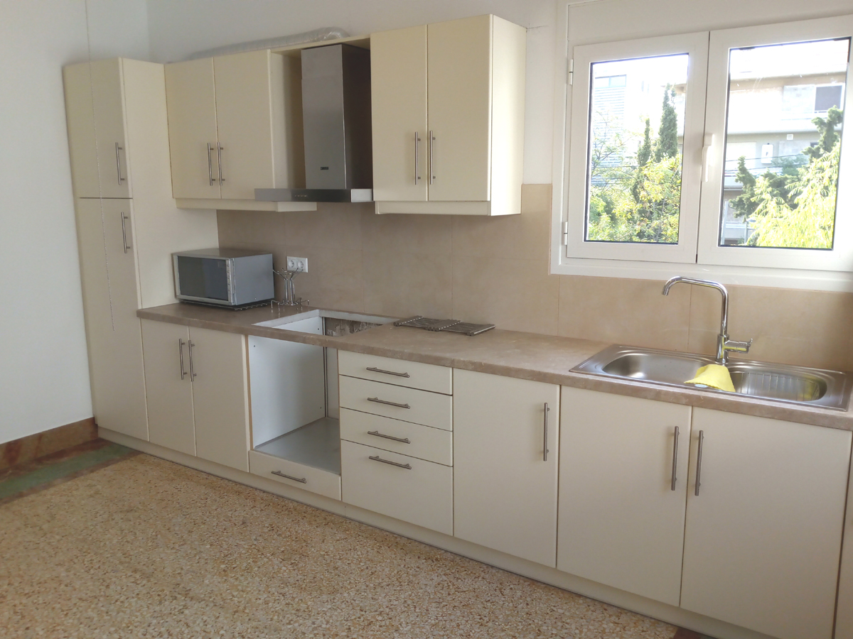 Κουζίνα σε μία ευθεία γραμμή με πορτάκια LPL, σε ανακαινισμένη παλαιά μονοκατοικία στην Αττική. Η πελάτις μας εμπιστεύθηκε για μία ακόμη φορά μετά από 20 χρόνια!