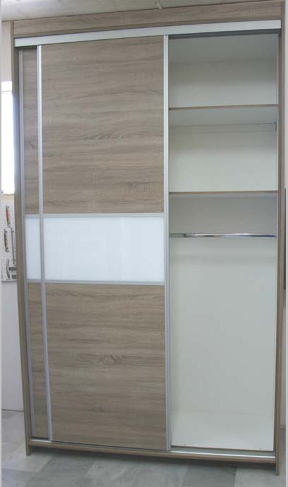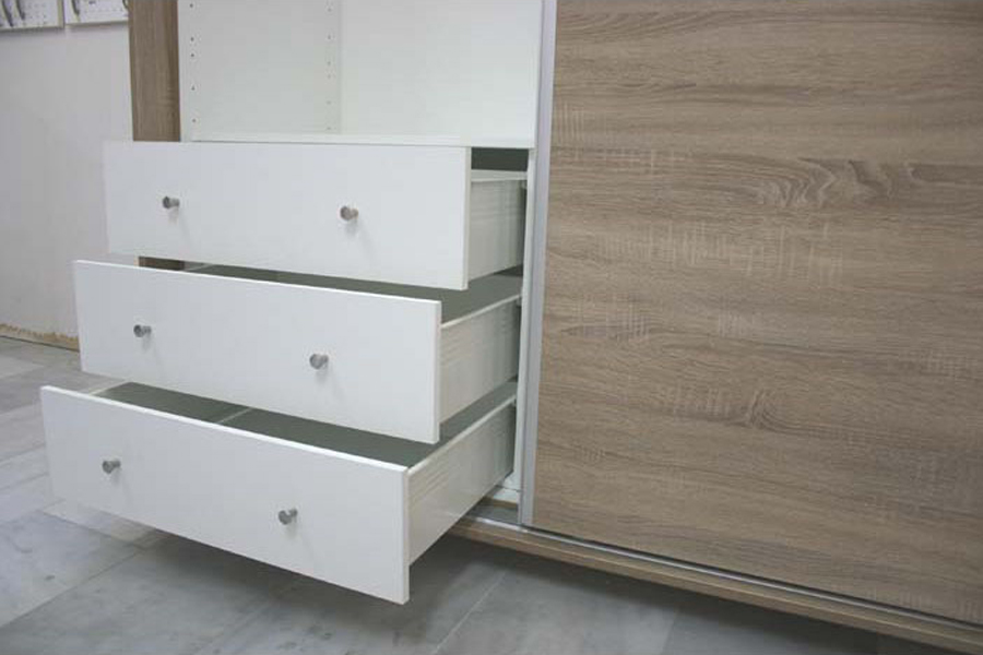 Ντουλάπα συρόμενη μέ υψηλής ποιότητος μηχανισμό για απολύτως αθόρυβη κύλιση των φύλλων καί μηχανισμό επιβράδυνσης για μαλακό κλείσιμο. Ράφι ενισχυμένο. Αν υπάρχει πλευρά εμφανής θα απαιτηθεί επιπρόσθετο πλαϊνό. Επιλέξτε χρώμα Μελαμίνης 18 χιλ.