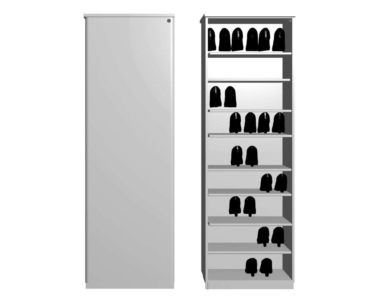 Παπουτσοθήκη μελαμίνης έγχρωμη με 8 ράφια. Τα ράφια μετακινούνται πολύ εύκολα στο επιθυμητό ύψος. Επιλέξτε λευκή ή έγχρωμη.