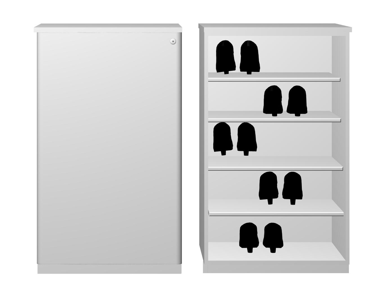 Παπουτσοθήκη μελαμίνης λευκή (πλάτη διαφορετικού χρώματος) με 4 ράφια. Τα ράφια μετακινούνται πολύ εύκολα στο επιθυμητό ύψος. Επιλέξτε λευκή ή έγχρωμη.