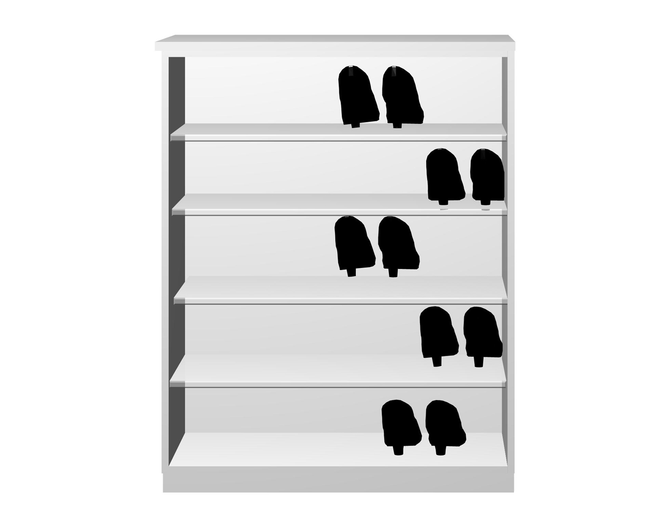 Παπουτσοθήκη μελαμίνης λευκή με 4 ράφια. Τα ράφια μετακινούνται πολύ εύκολα στο επιθυμητό ύψος. Επιλέξτε λευκή ή έγχρωμη.
